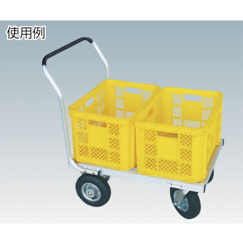 | 仕様・規格 | 組立式 固定2輪、自在タイヤ2輪 荷台寸法:535×750mm 積載重量80kg 均等荷重(kg):100 長さ(mm):850 幅(mm):590 高さ(mm):870 ハンドル高さ(mm):870 キャスター径(mm):キャスター無し 適合ストッパー:キャスター無し 付属ストッパー:ストッパーなし 積載面寸法(mm)長さ:750 積載面寸法(mm)幅:535 タイヤタイプ:250-4エアー入タイヤ 騒音値(dB):そのような設定はないです |