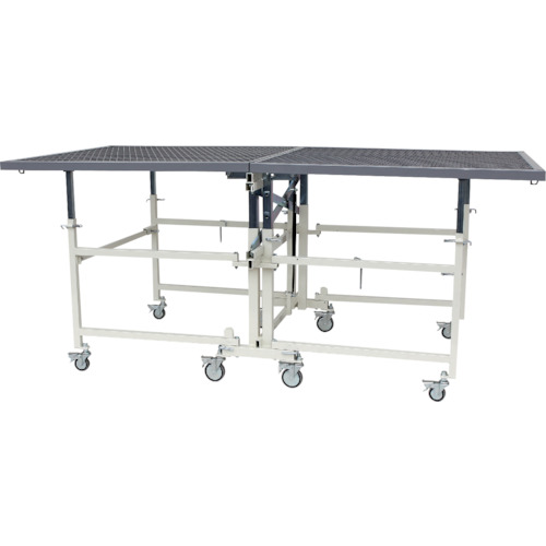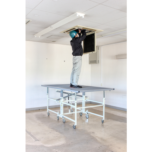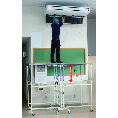 | 仕様・規格 | 完成品 9段階高さ調節185、205、225、245、265、285、305cm φ150ストッパー付キャスター10個使用 天板寸法:130×220cm 折りたたみ時寸法:幅74×長さ132×高さ194cm 施工高:370~500cm 安全荷重:250kg 本体重量:280kg 天板:エキスパンドメタル 最大使用質量(kg):250 天板高さ(m):仕様に記載 天板寸法(mm):1300×2200 施工高(cm):370~500 安全荷重(kg):250 |