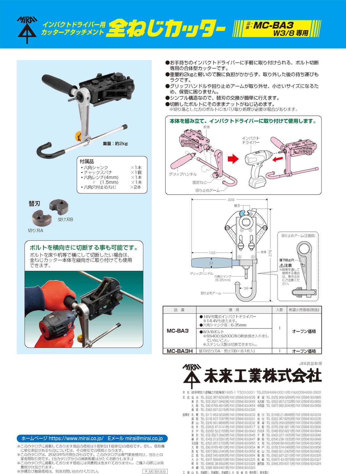 未来工業 インパクトドライバー用カッターアタッチメント 全ネジカッター W3/8専用 MC-BA3
