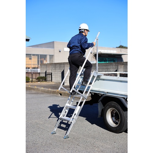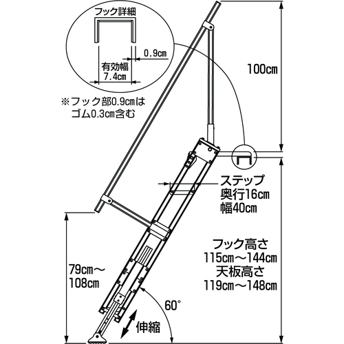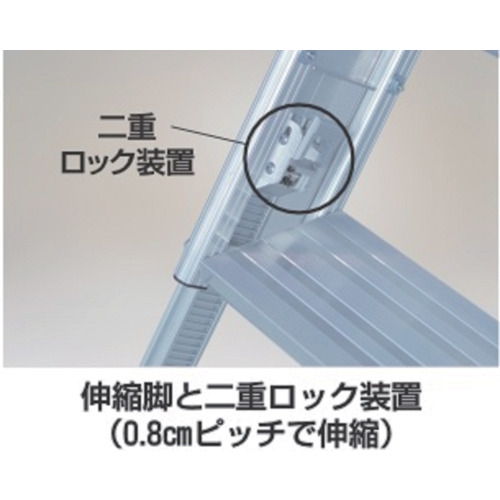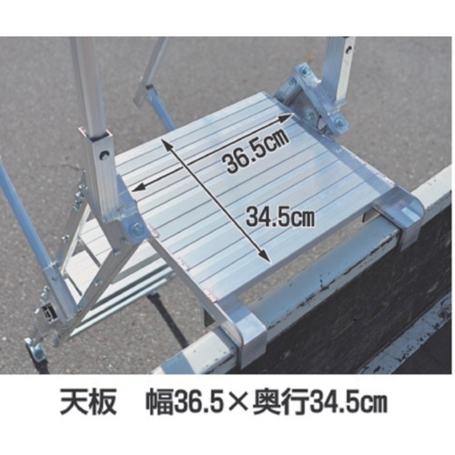 | 仕様・規格 | 組立式 フック有効幅:7.4cm 天板あり(天板寸法:34.5cm×36.5cm) ステップ幅:40cm奥行:18cm 脚部伸縮 最大使用荷重:100kg 手すり(左・右)付き 段数:5段 最大使用質量(kg):100 天板高さ(m):1.19~1.48 天板寸法(mm):345×365 段数(段):5 幅(mm):400 フック有効幅(mm):74 フック高さ(cm):115~144 |