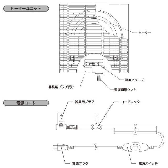 こたつ側面の温度の目安 | 強:約55℃ 弱:約37℃ |