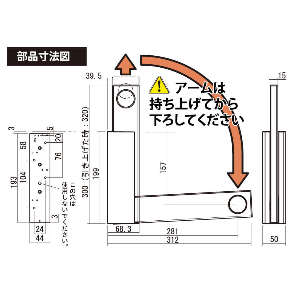 寸法 | 幅50mm×奥行312mm(アーム収納時 68.3mm)×高さ199mm(アーム収納時300mm) |