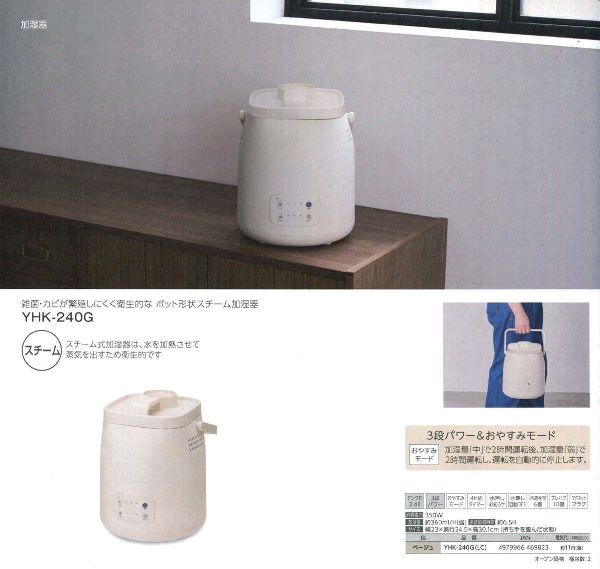ユアサプライムス YHK-240G スチーム加湿器ポットの紹介