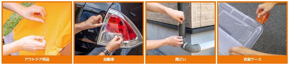 屋内、屋外、水まわり、スポーツ・アウトドア用品・自動車などの補修、補強、梱包、結束、固定、保護