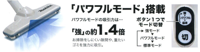 パワフルモードの吸引力は、なんと「強」の約1.4倍です!掃除のしにくい場所や重量のあるゴミをガンガン強力に吸ってくれます!