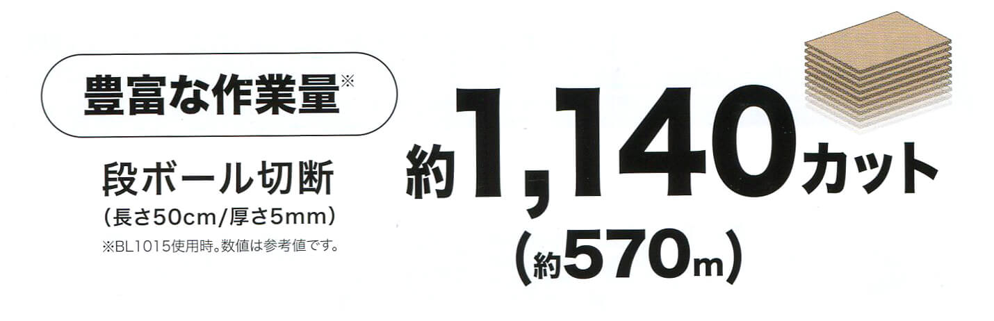 段ボール切断:約1,140カット(長さ50cm/厚さ6mm)/約570m(厚さ5mm)