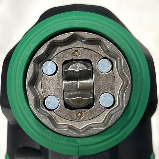 4つのマグネットでブレードを仮保持できるため、本体を下に向けたままでもブレード交換ができます。また、高所作業時などのブレードの落下リスクを軽減するので安心です。