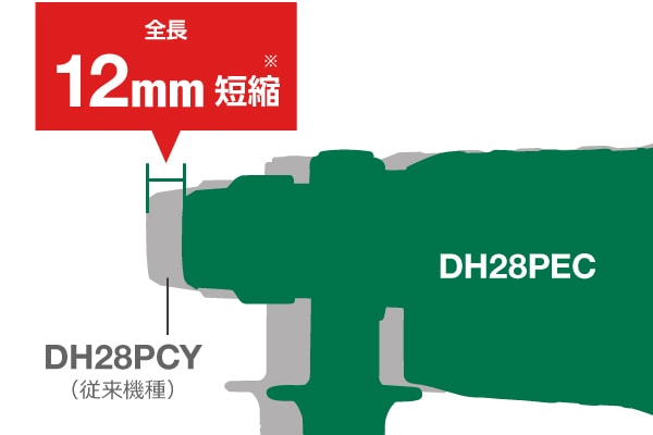 全長はDH28PCY(従来機種)と比較し12mm短縮!