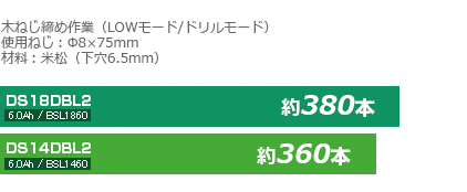 この条件で、DS18DBL2 【約380本】 DS14DBL2 【約360本】の圧倒的作業量を実現!