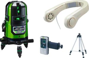 ムラテックKDS グリーンレーザー墨出し器の標準フルセット・受光器・三脚・ネッククーラーがついたネッククーラー付フルセット DSL-93RGRSA NC/ATL-69RGRSA NC/RGL-600LRSA NC はウエダ金物にお任せください!