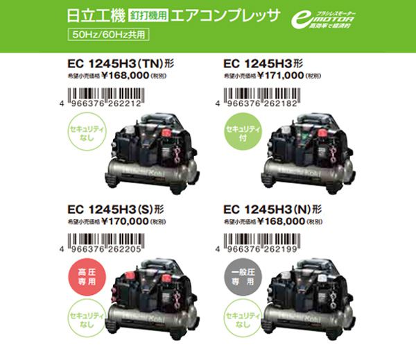 日立工機から釘打機用エアコンプレッサ EC1245H3 が発売されました!