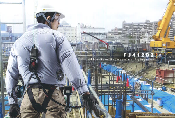 マキタから2018年モデルの充電式ファンジャケットが、2018年4月9日に新発売されました。本記事では、マキタ FJ412DZについて詳しく解説いたします。FJ412DZは、「フルハーネス安全帯」に対応しており、「チタン加工」と「ポリエステル」で紫外線、赤外線を反射してカットしてくれます。屋外の高所での作業に最適なマキタファンジャケットです。2018年モデルのマキタ ファンジャケットは「サイドファン」になりました。今回からご注意頂きたいのは、ファン自体も別売になった事です。必ずご確認宜しくお願いします。