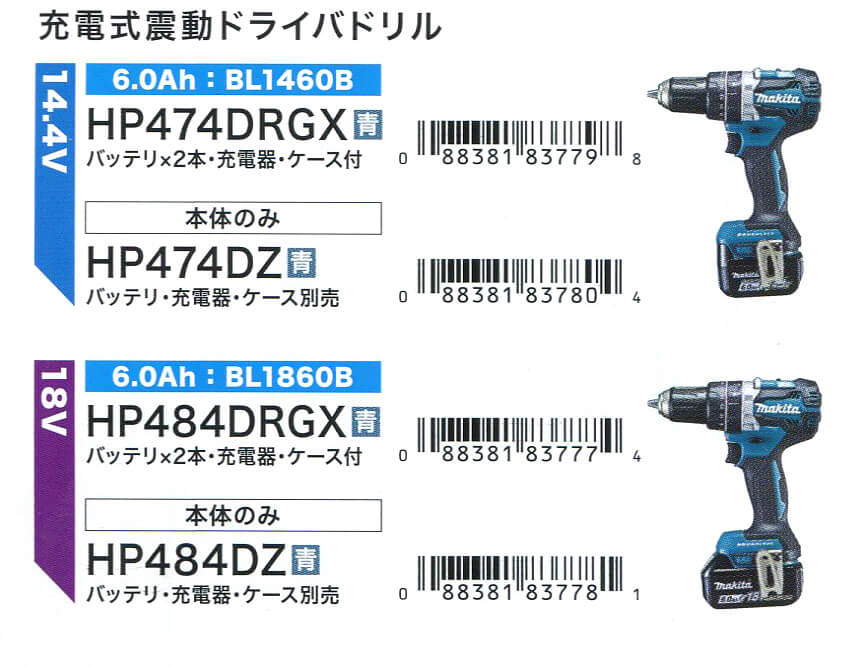 マキタHP484DRGX振動ドリルドライバー/HP474DRGX