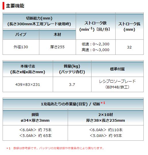 マキタ レシプロソー 本体② … マキタ 公式 カタログページ