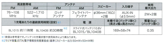 <Li-ionスライド式> 10.8V コンパクトラジオ