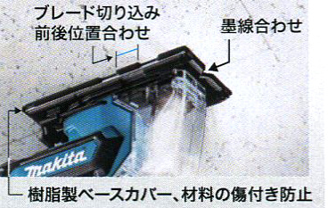| 切断能力(mm) 石こうボード:30 木材:15 ストローク数(min⁻¹)[回/分]:0~6,000 ストローク(mm):6 本機寸法(長さ×幅×高さmm):248×79×280 (BL1040B含む) 1充電あたりの作業量 石こうボード(目安) 厚さ12.5mm×1枚 [BL1040B使用時]約240m [BL1015使用時]約100m 厚さ9.5mm×2枚 [BL1040B使用時]約110m [BL1015使用時]約45m 質量(kg):[バッテリ含む] 1.6 標準付属品:石こうボード用ブレード(1枚)、ブレードカバー・ベースカバー、六角棒スパナ3 |