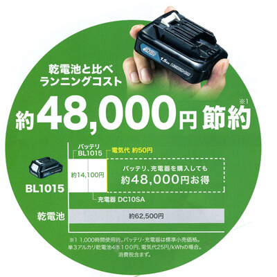 ※1,000時間使用時。バッテリや充電器は標準小売価格。