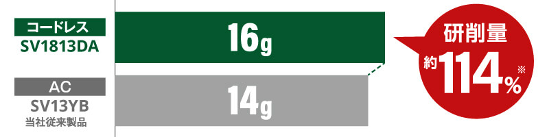 研削量の比較として従来のHiKOKI AC機と比較すると、研削量約114%