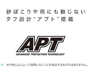 砂埃や雨にも動じないタフ設計のAPT(アプト)を搭載しています。