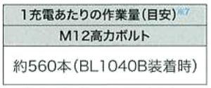 | 1充電当たりの作業量(目安) | M12高力ボルト:約560本(BL1040B装着時) |