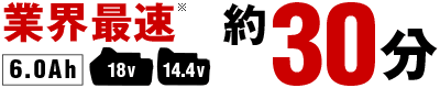 今回新搭載の充電器UC18YDLは業界最速の約30分の充電時間!めちゃくちゃ早い!