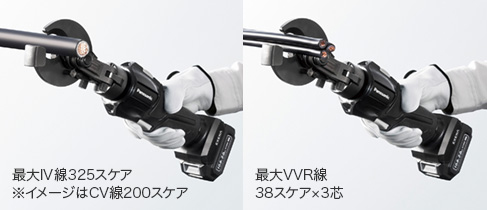 | 最大切断能力 | CV線(2芯)60mm2(Φ29mm)/IV線(単芯)325mm2(Φ29mm) VVR線(3心)38mm2(Φ28mm) |
