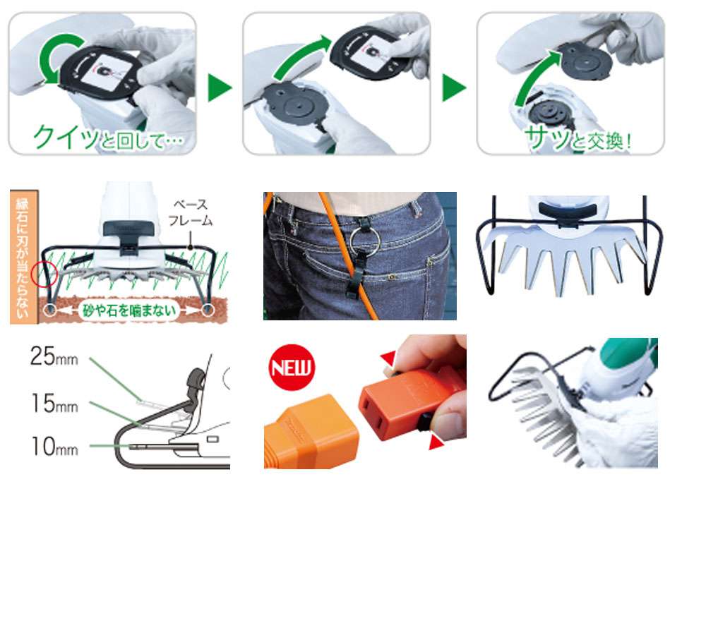 ベースフレームをはずせば新芽や、枝の細い生垣の刈り込み、玉造りが可能です。