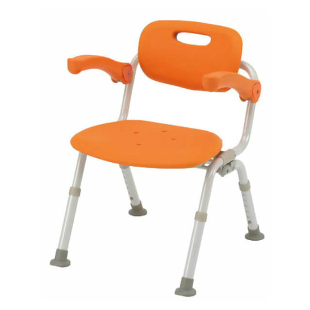 | サイズ | 幅45.5×奥行49~57.5×高さ64~74cm おりたたみ寸法:幅45.5×高さ87~97×厚さ20cm ひじかけ内寸37.5cm 座面高さ:36~46cm(2cm間隔6段階調整) 座面寸法:幅41.5×奥行31.5cm |