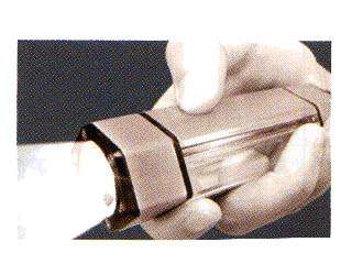電源を入れ、パワーパネル(図真ん中/親指設置部分)に触れると触れている間先端のライトが点灯。