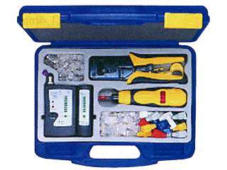 ・LANケーブルのネットワーク工事に必要なツールとテスターとプラグをキャリングケースにセット