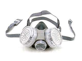 ○吸収缶が2個付き、呼吸が楽で、長時間作業向き