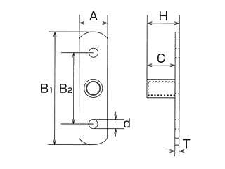 | 品番 | A(mm) | B1(mm) | B2(mm) | H(mm) | T(mm) | d(mm) | C(mm) | 捻径 | weight(g) | 参考使用荷重(kgf) | 参考使用荷重(kN) |