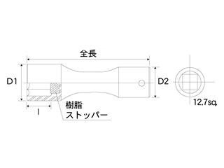 | ITEMNO. | サイズ | D1(mm) | D2(mm) | l(mm) | 全長(mm) | 重量(g) |