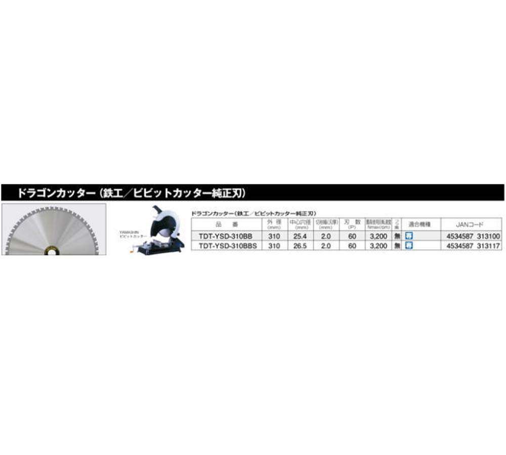 山真 ドラゴンカッター(鉄工/ビビットカッター純正刃) TDT-YSD-310BBS