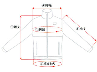 | 着丈 | 胸囲 | 裾まわり | 肩幅 | 袖丈 | |