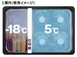 | 設定温度 | -18℃および-15~60℃の5℃単位 (2部屋モード時の最大設定温度差:30℃) |